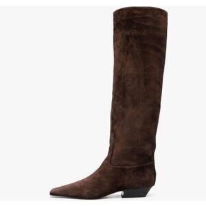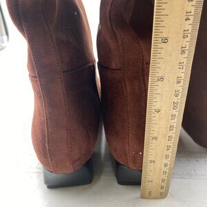 Dark Brown Square Toe Knee High Boots Wide Calf Low Chunky Heel Long Boots