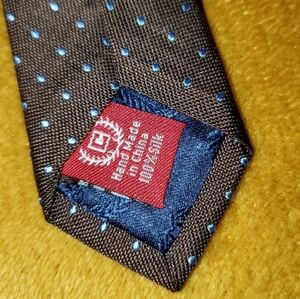 Dark brown necktie with small blue dots