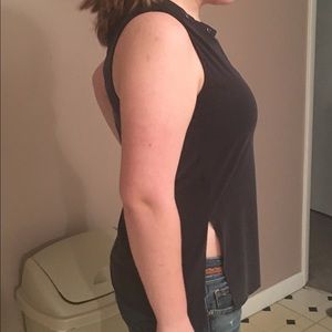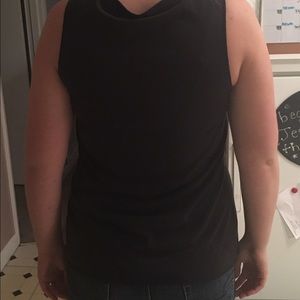 Dark charcoal muscle tee! Beautiful color. Go great with black skinnies!! Size small.