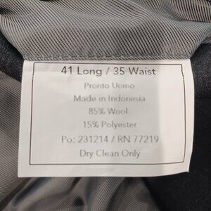 From Men's Warehouse. Pronto Uomo. Size 41L. Pants waist is 35, inseam 32. Worn once for less than a couple of hours. Almost brand new.