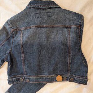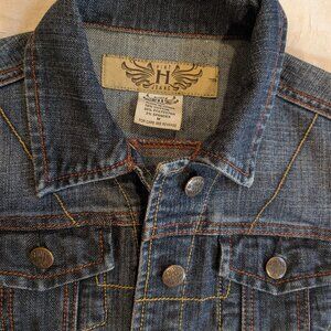 Hint Jeans dark wash cropped denim jacket. Used in great condition. Colored threading details. Size is medium but fits like a small