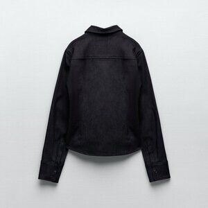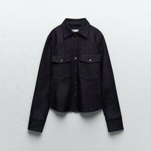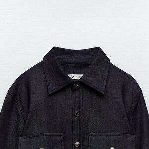 Dark Denim Zara Snap-Front Woven Long Sleeve Jean Top (NWT)