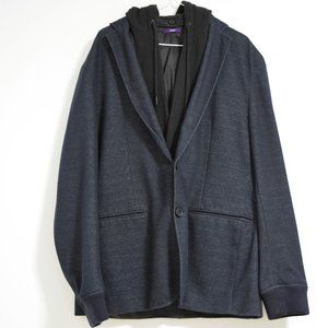 Dark Faux Denim Double Layer Hooded Sweatshirt Jacket | Size L