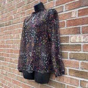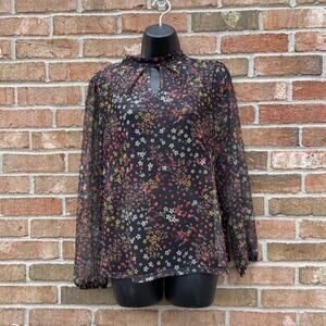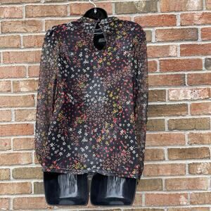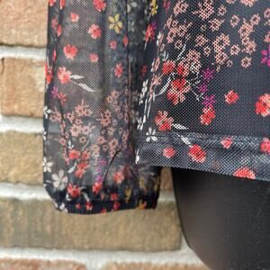 Dark Floral Fairy Grunge Whimsigoth Sheer Blouse Mock Neck Layering Tee medium