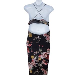 Dark Floral Halter Midi Dress Size XL AFRM Open Back Whimsigoth Y2K Stretch