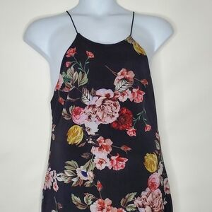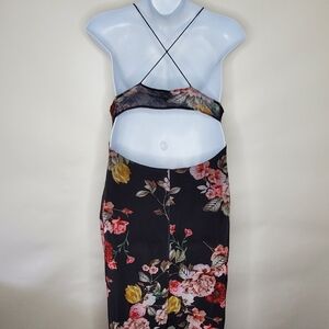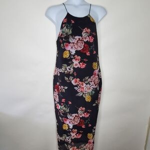 AFRM Open Back Halter Midi Dress Size XL Dark Floral Stretch Lined Y2K Party.