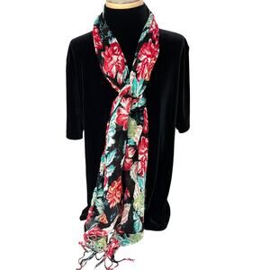 Dark Floral SCARF Crinkle Gauze Woven Rose Paisley Fringe Romantic Boho