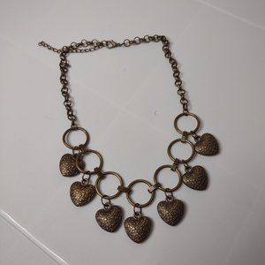 Dark Gold Tone Dangling Hearts Necklace Adjustable 17.5 To 19 Inches Long. Check Out My Closet For Other Great Items!!! Thank You For Considering Making A Purchase.