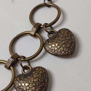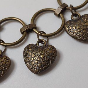 Dark Gold Tone Dangling Hearts Necklace Adjustable 17.5 To 19 Inches Long