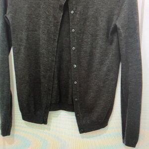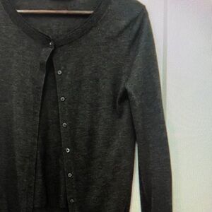 Stylish dark gray cardigan with button-up front. Perfect for layering.
