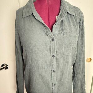 Stylish dark gray button-up shirt with a classic collar and front pocket. Perfect for casual or formal wear.