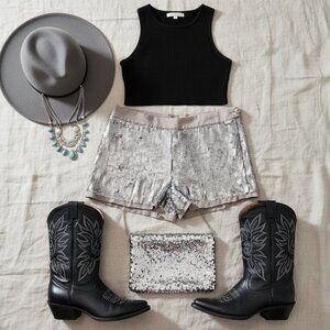 Dark Gray Full Sequin Shorts Size Medium Boho Western