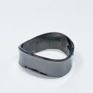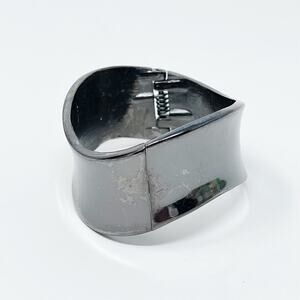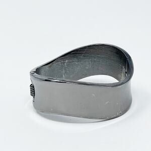 Dark Gray Silver Tone Wave Bangle Bracelet 1" Wide Fashion Statement Costume
