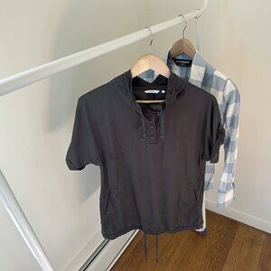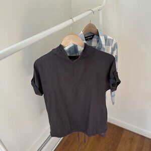 Get ready to slay the street style game with this gorgeous dark gray Bossini top featuring a sleek high neck with button details that lets you customize your look! The roll-tab sleeves, convenient side pockets, and cinched bottom hem create the perfect silhouette while keeping you comfy and on-trend. This versatile top is in great condition and ready to become your ticket to effortless cool!