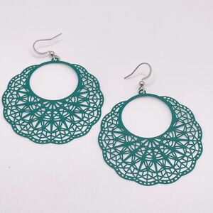 Dark Green Bohemian Dangle Hoop Big Flower Earrings