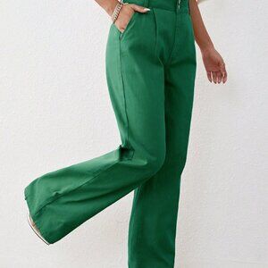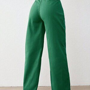 Dark Green Casual Women's High Waist Wide Leg Jeans