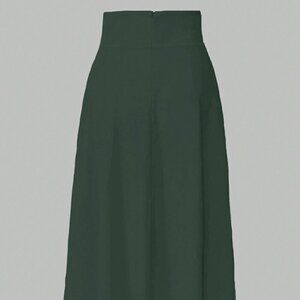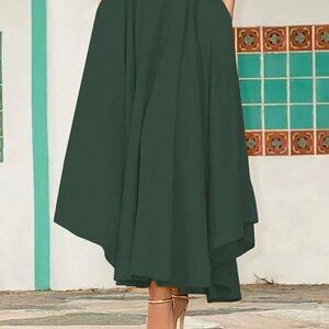 Dark Green Casual Women's Large A-Line Bow Tie Waist Midi Skirt