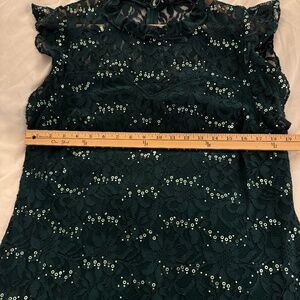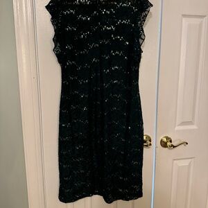 Sequins on lace sheath.