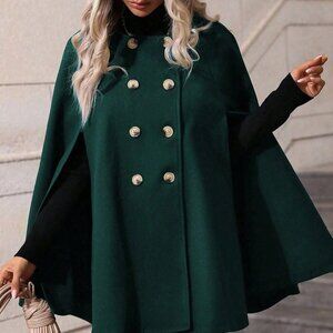 Dark Green Elegant Women's Double-Breasted Mid-Length Cape