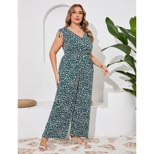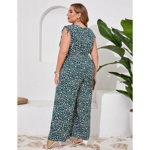 Dark Green Floral Wide Leg Jumpsuit Romper Size 5XL