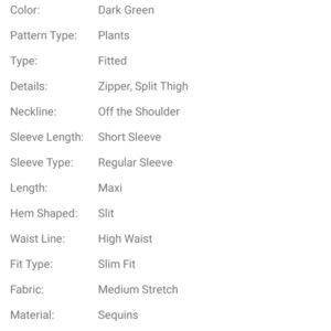 Dark Green Plants Pattern, Split Thigh, Off The Shoulder Sequined Maxi F…