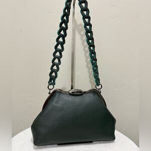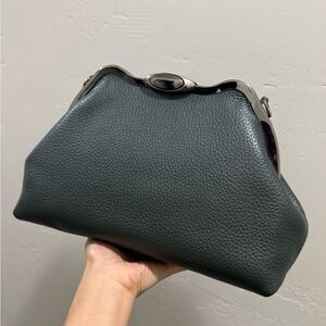 Dark Green Premium Togo Calfskin Handmade Custom Metal Frame Handbag & 2 Straps