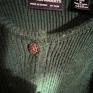 Discover timeless elegance with this dark green ribbed cardigan from . Perfect for any occasion, this sweater offers both style and comfort. Vintage. Unique metal buttons