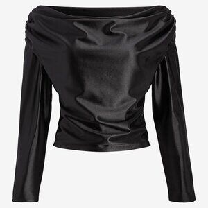 Dark Green Satin Off the Shoulder Draped Top by Express