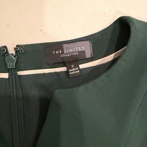 Details: The Limited office/business dress; dark green, size 2, has some stretch to it; midi-ish, goes to knee/below