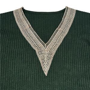 Dark Green V-neck Sweater Balloon Sleeves Gold Trim Vneck Jumper Fall Winter