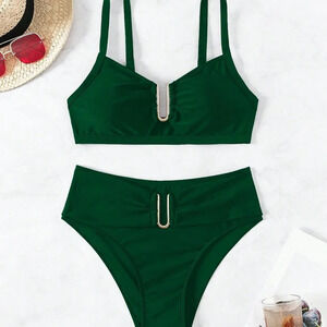 Dark Green Women's U-Shaped Ring Design Sexy Bikini Set