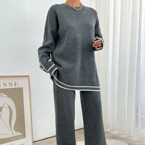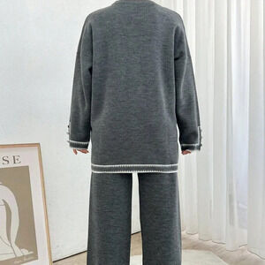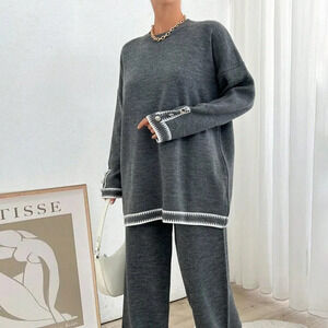Dark Grey Casual Women's Contrast Detailed Sweater And Pants Set