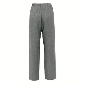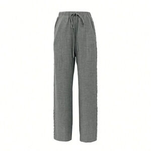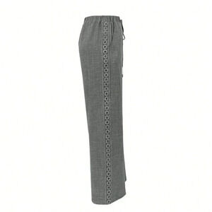 Dark Grey Casual Women's Drawstring Side Splicing Lace Trim Wide Leg Pants