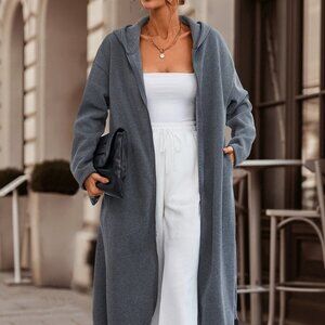 Dark Grey Casual Womens Drop Shoulder Drawstring Hem Zip Up Hoodie