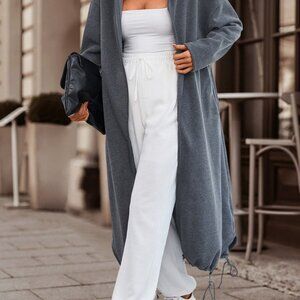 Dark Grey Casual Womens Drop Shoulder Drawstring Hem Zip Up Hoodie