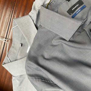 Sold in Germany by storied shirting brand Seidensticker, this dress shirt is a dark gray color, barely worn. Fit is called "shaped" which means basically a tiny bit tighter than a slim, but for a dress shirt it has plenty of room to move, just less fabric bunching up at the waist.