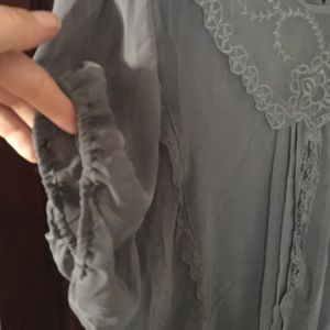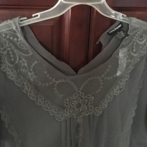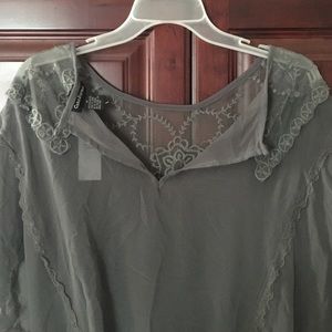 Brand New Dark Grey top with lace and 100% polyester. Very light and flowy with a bungee bottom.