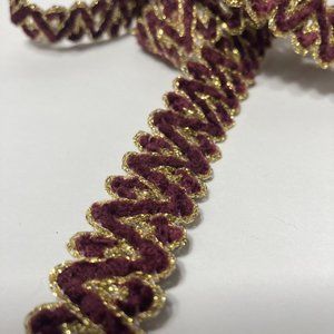 Dark Maroon Red & Metallic Gold Trim 3/4" 10 Yards Sewing Ribbon Crafts