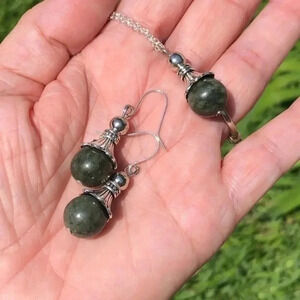 Handmade by me! Beautiful stone and stamped 925 sterling silver necklace and drop earrings set. Chain is appx 18”. I ship fast!