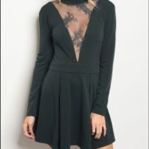 Long sleeve fit and flare cut out dress with deep cut v-neck. Front and back mesh detail. Your freshest look for a night out. Content: 94% polyester/6% spandex.