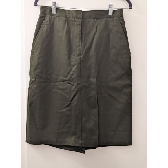 Dark Olive Green Knee-Length Skirt With Adjustable Waist & Pockets
