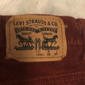 Dark Orange, Size 16 reg. W28"xL28" W71cm. There is a whole where the belt goes but can easily be fixed