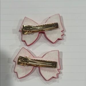 Stylish Dark Pink Coral colored bow hair clips. Perfect for adding a pop of color to any outfit.