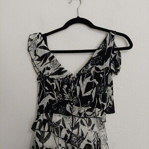 Dark Pink Deconstructed Midi Tea Dress Black White Layered Ruffled Sz US 2 /UK 6