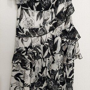 Dark Pink Deconstructed Midi Tea Dress Black White Layered Ruffled Sz US 2 /UK 6.