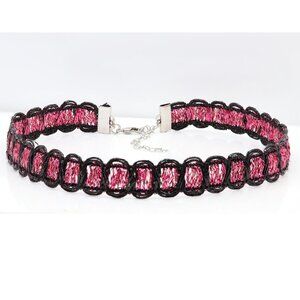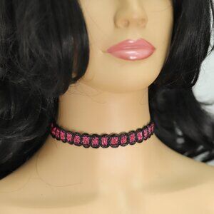 Dark Pink and Black Choker Adjustable Elegant Lace Chokers (#15)