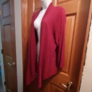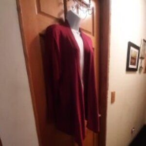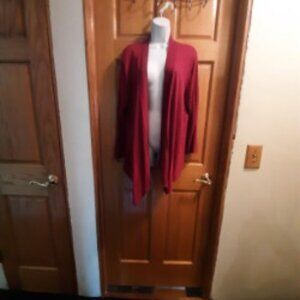 This Rust colored Cardigan is lightweight with long sleeves. The back hem measures at 27 inches from the shoulder and 32 inches in the front. Can be worn down or tied up for a shorter look.