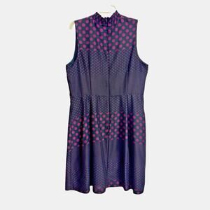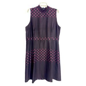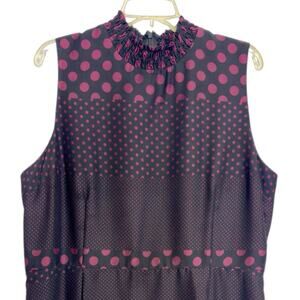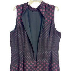 Dark Polka Dot Sleeveless Midi Dress 2XL Smock Neck Moody Whimsical Retro Office