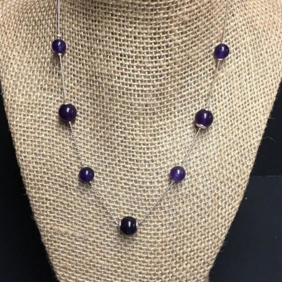 Dark Purple Necklace Round Bead Silver Chain Classic Retro Boho