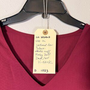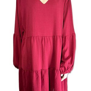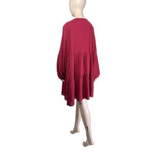 Dark Red Babydoll V-Neck Dress with Balloon Sleeves – Size XL